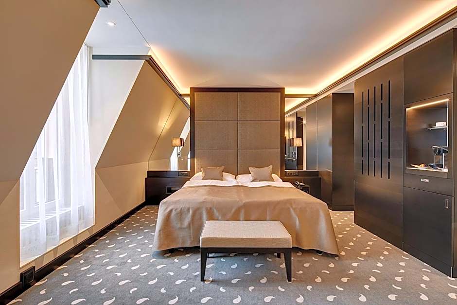 Large junior suite with a seating area, a mini-bar, free WiFi, sound-insulated windows and a TV with 74 satellite channels.